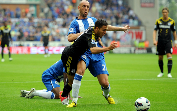 Se Oscar já surpreendeu aos ingleses por ter custado cerca de R$ 80 milhões, com Eden Hazard não foi diferente. Eleito o melhor jogador das últimas duas edições do Campeonato Francês, o ex-meia do Lille foi o grande nome da estreia o Chelsea na Premier League, no último domingo. Até o momento, pode-se dizer os R$ 101 milhões investidos prometem ser retribuídos pelo belga, dono da assistência do primeiro gol e resposável por sofrer o pênalti do segundo na vitória sobre o Wigan, por 2 a 0, fora de casa.