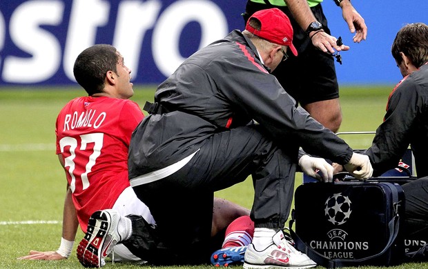 Rômulo recebe atendimento médico em campo e é obrigado a ser substituído n(Foto: EFE)